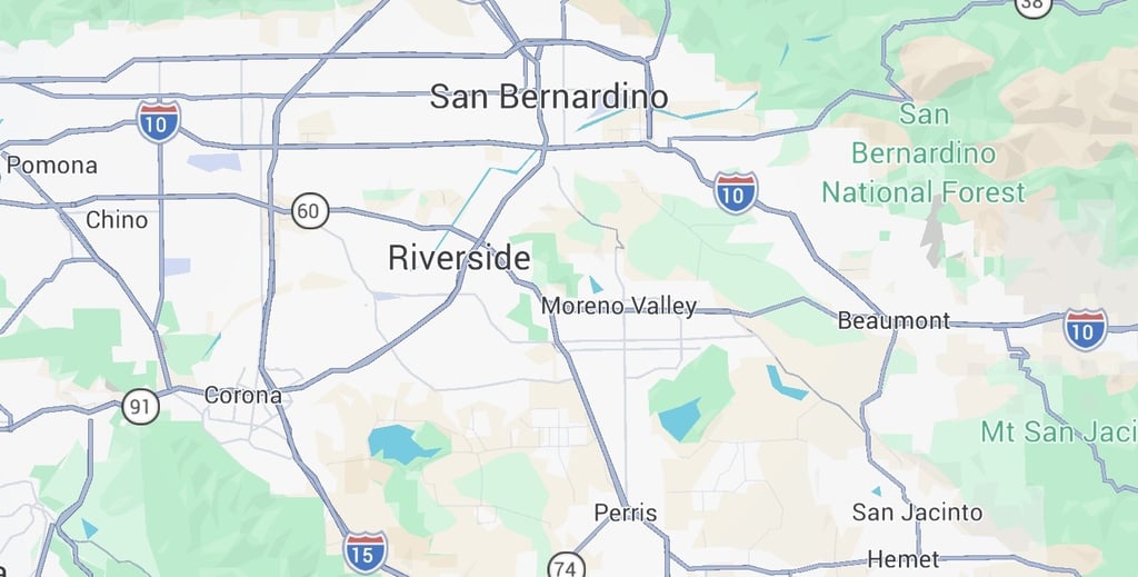 – Riverside – San Bernardino – Fontana – Moreno Valley – Rancho Cucamonga – Ontario – Corona – Victorville – Temecula – Murrieta – Pomona – Chino –Chino hills –Hemet – San Jasinto – Beaumont – Rialto – Colton –Highland –Montclair –Juruoa Valley –Y ALRREDEDORES